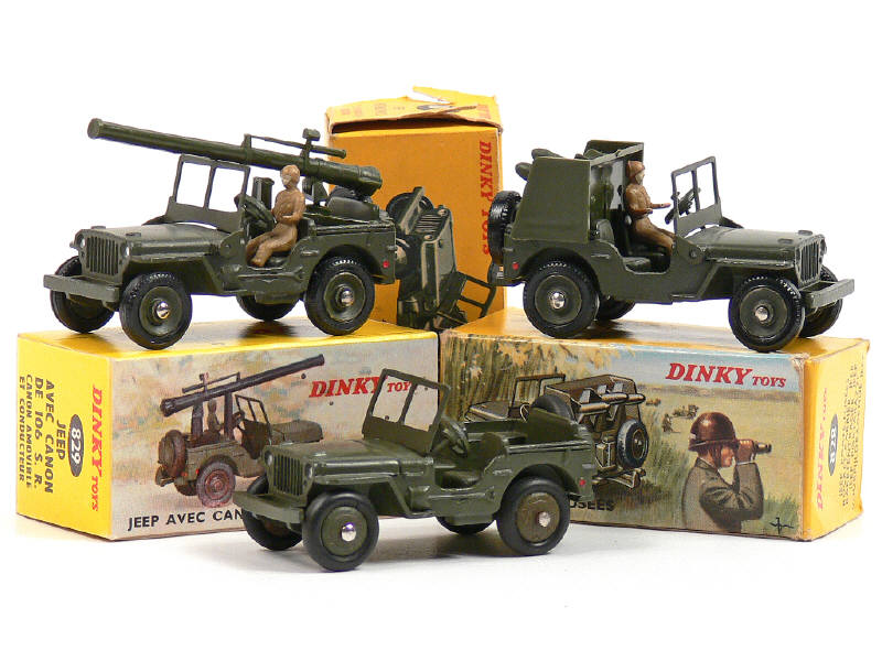 DINKY TOYS (FRANCE) 829 JEEP WILLYS Porte-canon kaki