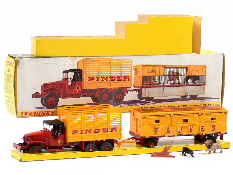 DINKY TOYS (FRANCE) 881 GMC 'PINDER' avec remorque-cage à fauves rouge & jaune