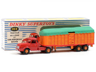 DINKY TOYS (FRANCE) 36B WILLEME Semi-remorque bâché (version avec jantes convexes) rouge & orange, bâche verte