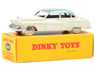 DINKY TOYS (FRANCE) 24V BUICK ROADMASTER (version avec intérieur de toit quadrillé & jantes chromées) ivoire, toit bleu clair métal