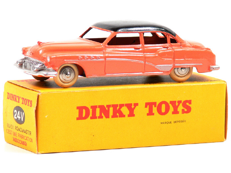DINKY TOYS (FRANCE) 24V BUICK ROADMASTER (version avec intérieur de toit quadrillé & jantes chromées) saumon, toit noir