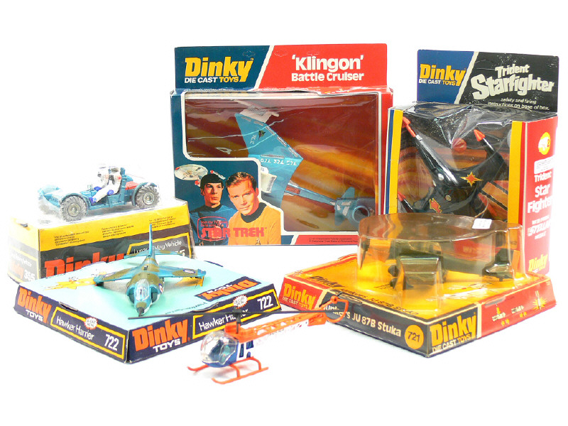 DINKY TOYS (GB) Ensemble de 2 avions, 2 engins spatiaux, un hélicoptère & un véhicule lunaire