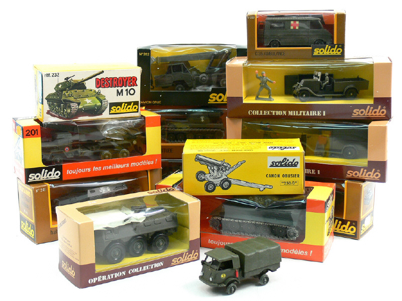 SOLIDO (FRANCE) Ensemble de 13 engins militaires & un canon