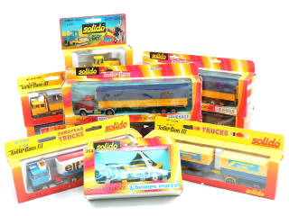 SOLIDO (FRANCE) Ensemble de 9 camions & un engin de travaux publics