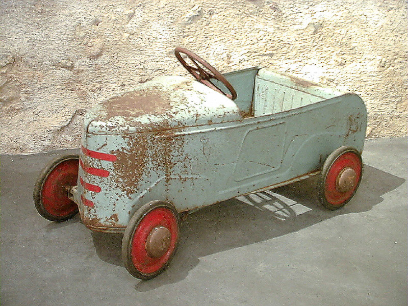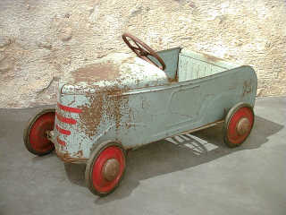 VOITURE A PEDALES Roadster années 30 bleu ciel & rouge