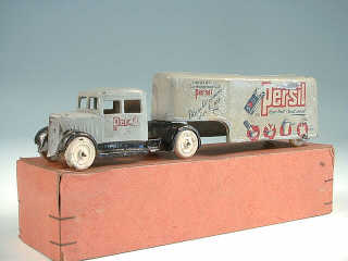 PROMOTIONNEL fabriqué en 1930 - ce modèle aurait été offert aux usagers de la célèbre marque de lessive, en échange de bons découpés sur les paquets PERSIL - petite fente (1,5cm) sur la partie latérale droite du fourgon - TRES BEL ETAT GENERAL POUR CE MODELE RARISSIME !