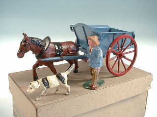 FIGURINES en plomb creux (FRANCE) Charrette à cheval bleu, rouge & marron