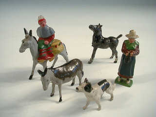 FIGURINES en plomb creux (FRANCE) Fermière sur son âne