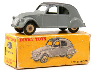 DINKY TOYS (FRANCE) 24T CITROËN 2CV (version avec 3 feux arrière) gris clair, capote gris foncé mat, jantes crème