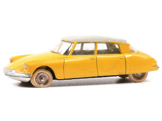 DINKY TOYS (FRANCE) 522 CITROËN DS 19 (version avec vitres & jantes concaves) jaune d'or, toit gris clair