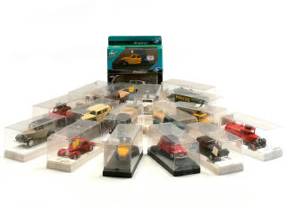 états de 'A' à 'D' - miniatures reproduisant les modèles : BUGATTI, CITROËN, DELAGE, DUESENBERG, DODGE, FORD & MERCEDES - tous les modèles sont en boîte (en état 'b' avec quelques boîtes non conformes) - petits manques - quelques véhicules transformés
