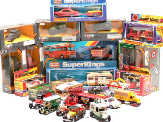 états de 'A' à 'R' - miniatures reproduisant notamment les modèles : FORD, CITROËN, MACK, BENTLEY, CHEVROLET, JAGUAR, TALBOT, DODGE, MERRYWEATHER, RENAULT, CROSSLEY & MORRIS - on y retrouve les marques CORGI & MATCHBOX - petits manques - un coffret incomplet