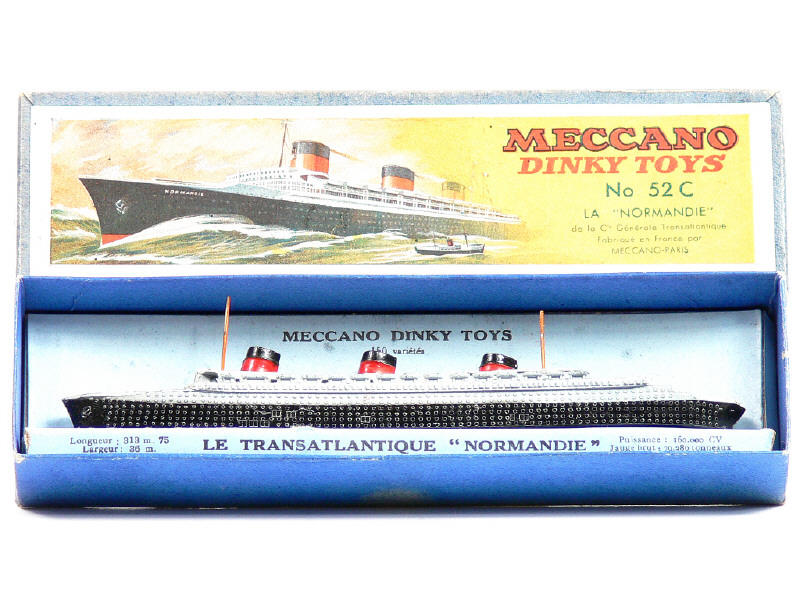 DINKY TOYS (FRANCE) 52C PAQUEBOT 'NORMANDIE' (version d'après-guerre) blanc, noir & rouge