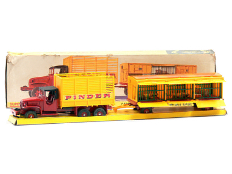 DINKY TOYS (FRANCE) 881 GMC 'PINDER' avec remorque-cage à fauves rouge & jaune