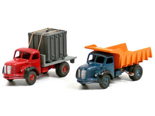 DINKY TOYS (FRANCE) 34B BERLIET Plateau avec container (version avec anneau moulé) rouge, plateau gris foncé