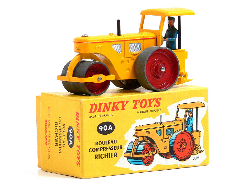DINKY TOYS (FRANCE) 90A RICHIER Rouleau compresseur jaune & rouge