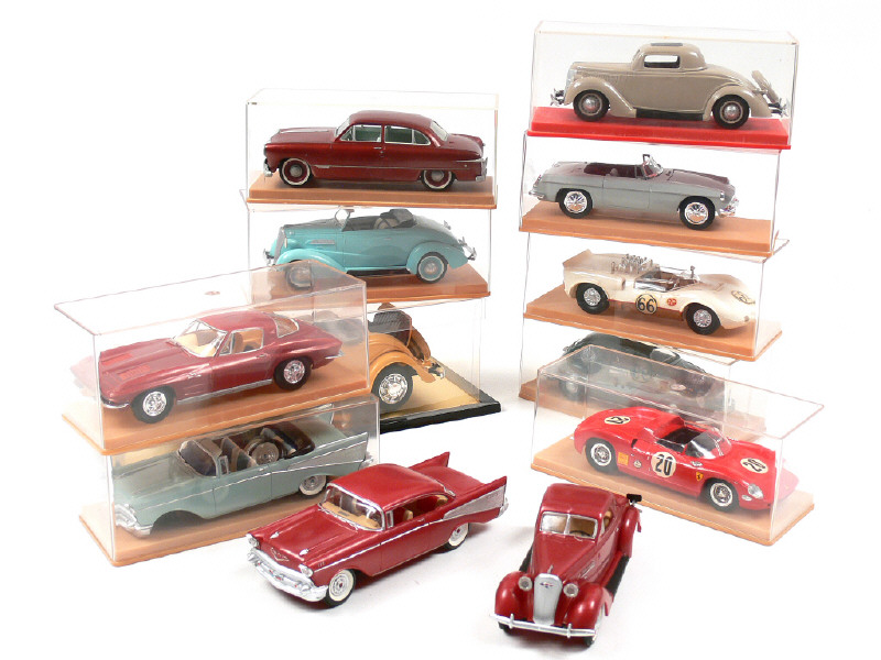 maquettes montées - miniatures reproduisant notamment les modèles : CHEVROLET, FORD, FERRARI, CHAPARRAL & VOLKSWAGEN - 2 roues & un pare-chocs à recoller - BELLES REALISATIONS !