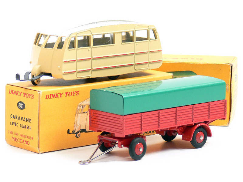 DINKY TOYS (FRANCE) 811 Caravane (version avec toit strié) crème, filets rouges, toit blanc