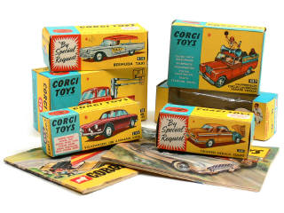 CORGI TOYS (GB) Ensemble de 6 boîtes vides & 2 catalogues des années 1965 & 1969