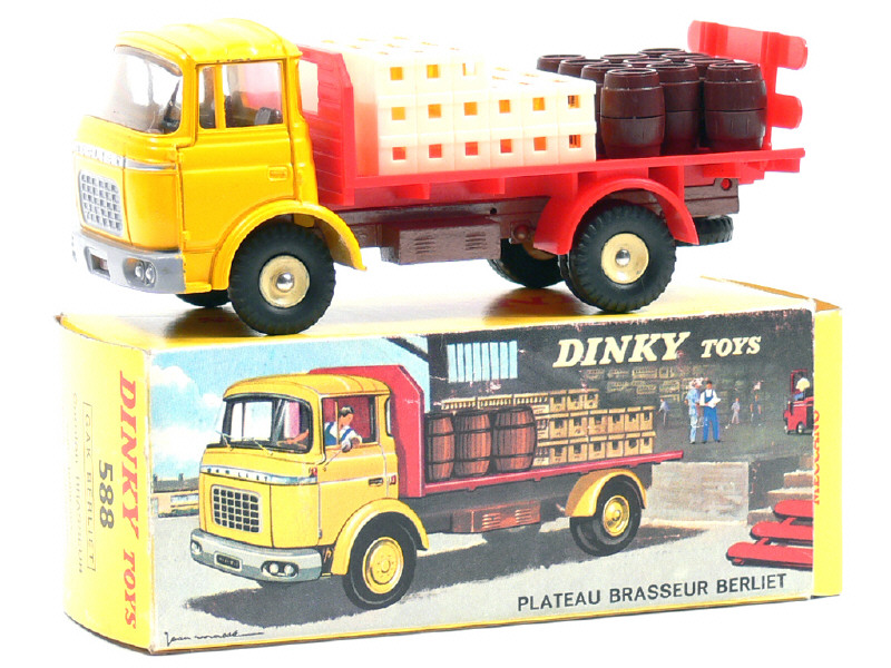 DINKY TOYS (FRANCE) 588 BERLIET GAK Brasseur jaune, plateau rouge