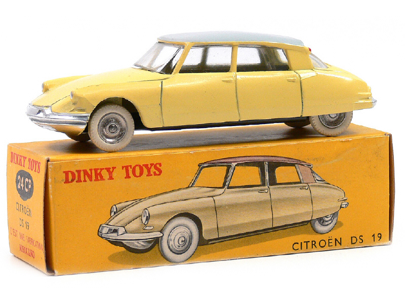DINKY TOYS (FRANCE) 522 CITROËN DS 19 (version avec vitres & jantes concaves) jaune paille, toit gris clair