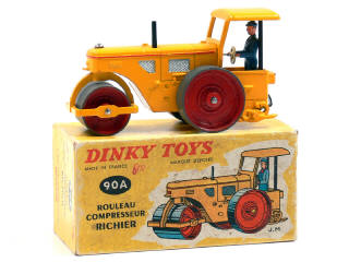 DINKY TOYS (FRANCE) 90A RICHIER Rouleau compresseur jaune & rouge