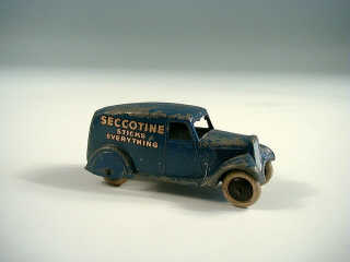 DINKY TOYS (GB) 28B Delivery van 'SECCOTINE STICKS EVERYTHING' bleu, publicité en lettres d'or