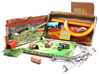 états de 'C' à 'F' - comprend : un circuit 'AUTO-RELAIS' de la marque PUNCH, un circuit 'MONT-BLANC EXPRESS' de la marque MONT-BLANC, un circuit 'AEROGARE' de la marque WAMOO & un circuit de la marque JH - 3 modèles avec boîte en état 'd' & 'e' - traces d'oxydation sur plusieurs éléments