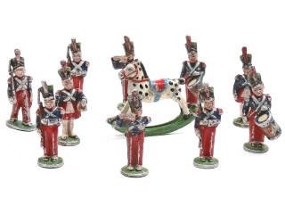 comprend : 3 soldats au 'présentez armes', un soldat au défilé, 2 tambours, 2 fifres & 2 cantinières - manque une extrémité de fifre & une autre tordu