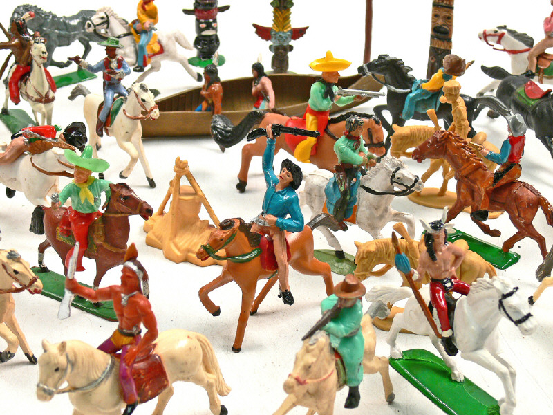 FIGURINES DIVERSES Ensemble important de 39 figurines, 37 chevaux & accessoires du Far-West