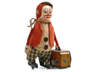 hauteur 11,5 cm - moteur à clef (fonctionne) - en action, le clown tourne en rond avec sa valise