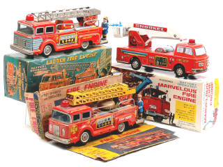 K (JAPON) Camion grande échelle de pompiers en tôle lithographiée rouge