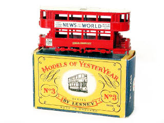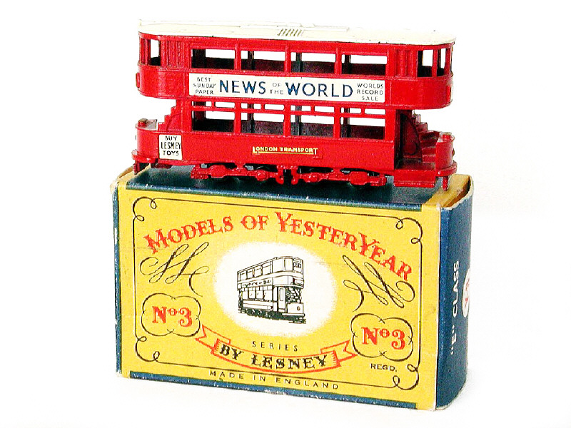 MATCHBOX - MODELS OF YESTERYEAR (GB) Y-3 Tramway londonien 'NEWS OF THE WORLD' rouge, toit crème