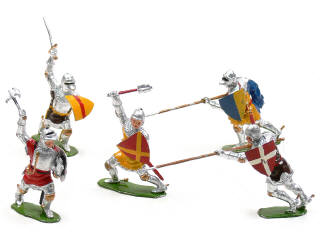 comprend : 2 chevaliers avec lance, un avec épée, un avec hache & un avec masse d'arme