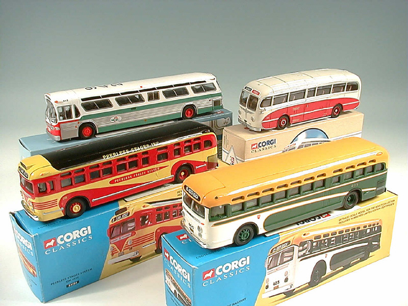 CORGI TOYS (GB) 54104 GM 4509 Autocar 'PEERLESS STAGES SYSTEM' noir, rouge & jaune