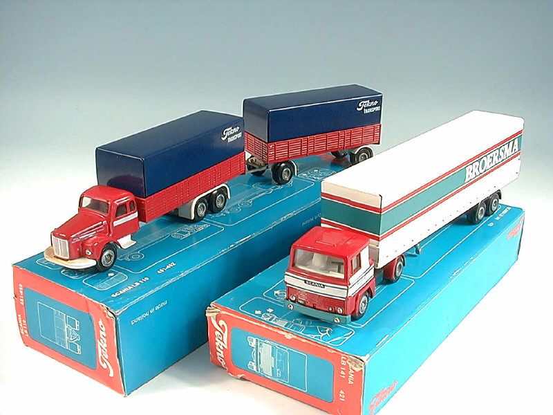 TEKNO (DANEMARK) 451-452 SCANIA LS110 'TEKNO TRANSPORT' avec remorque rouge & bleu