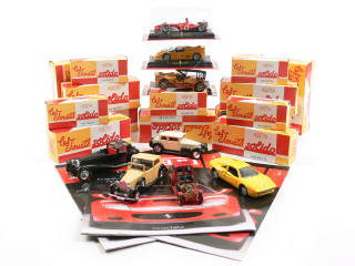 états de 'A' à 'C' - miniatures reproduisant les modèles : FORD, ROLLS ROYCE, CORD, DELAHAYE, PANHARD & LEVASSOR, BUGATTI, LANCIA, PORSCHE, AUDI, JAGUAR, RENAULT, HISPANO SUIZA, DUESENBERG, VOISIN, FERRARI, PACKARD LANDAULET & SIMPLEX - on y retrouve les marques : SOLIDO, MATCHBOX, ALTAYA, EDITIONS FABBRI & MAISTO - 6 voitures sans boîte - petits manques - on y joint 4 fascicules & un porte-clefs