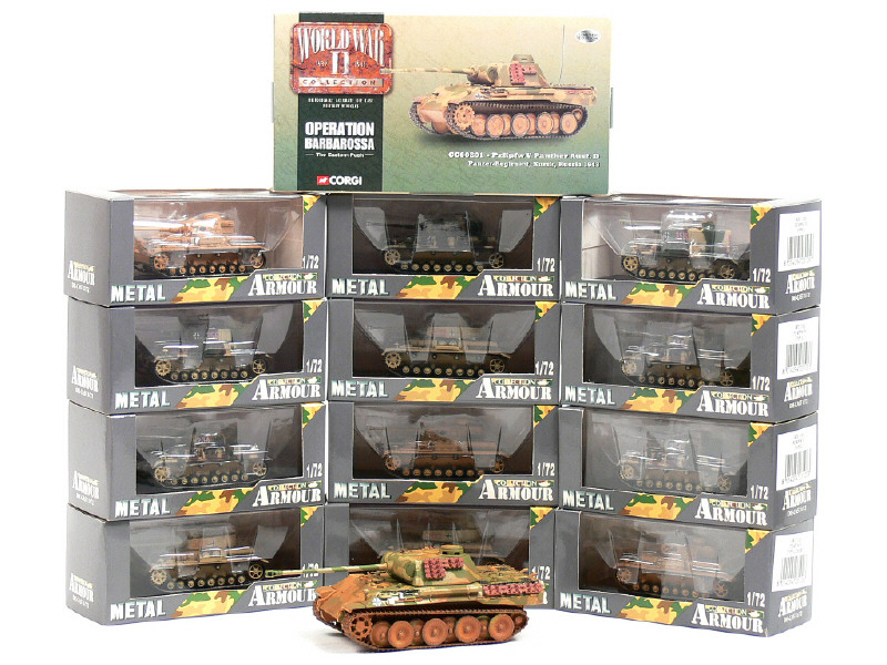 comprend les références : 3102 (3 exemplaires), 3103 (4 exemplaires), 3104 (3 exemplaires) & 3105 (2 exemplaires) - on y joint un PZ KPFW V de la marque CORGI TOYS
