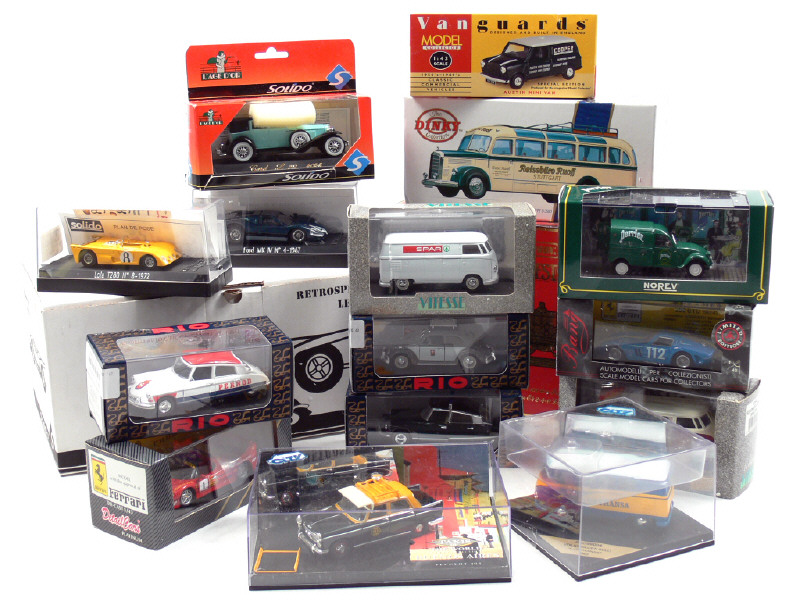 miniatures reproduisant les modèles : VOLKSWAGEN, CITROËN, FERRARI, PEUGEOT, CORD, MERCEDES, MINI, SCAMMELL, FORD, LOLA, LIGIER, ALFA ROMEO & PORSCHE - on y retrouve les marques : SOLIDO, DINKY MATCHBOX, RIO, NOREV, BANG, VITESSE, DETAILCARS, VANGUARD & MATCHBOX - 12 véhicules en coffret