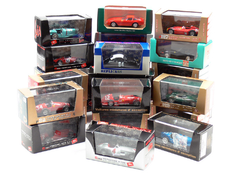 miniatures reproduisant les modèles : BUGATTI, FERRARI, FORD, JAGUAR, LAND ROVER, MERCEDES, PORSCHE, SUBARU & TOYOTA - on y retrouve les marques : BANG, BRUMM, AUTO ART, VITESSE, RIO, TOP MODEL & TROFEU