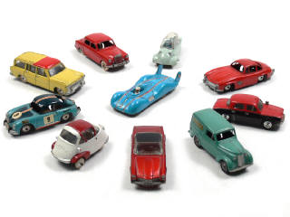 états de 'C' à 'R' - miniatures reproduisant les modèles : ETOILE FILANTE, FACELLIA (roues non d'origine), ISETTA, MERCEDES, MESSERSCHMITT, PORSCHE (décalques ajoutés), RENAULT & SIMCA - on y retrouve les marques : CIJ & QUIRALU - petits manques
