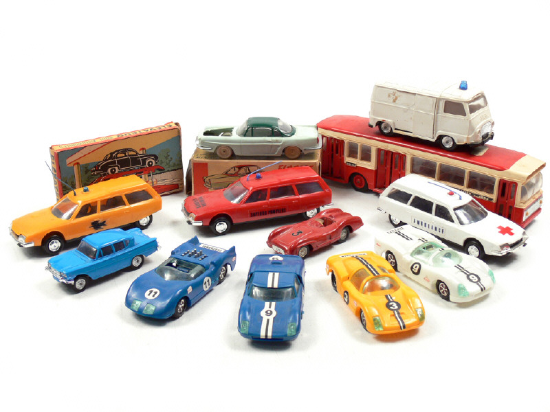 états de 'C' à 'R' - miniatures reproduisant les modèles : BERLIET, CHAPARRAL, CITROËN, FERRARI, FORD, MERCEDES, PORSCHE & RENAULT - on y retrouve notamment les marques : MINIALUXE, NESTLE & INJECTAPLASTIC - 2 véhicules en boîte (état 'c') - quelques petits manques