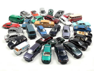 états de 'A' à 'C' - miniatures reproduisant les modèles : AUDI, BMW, JAGUAR (état 'E'), LAND ROVER, OPEL, RENAULT, TRIUMPH, ZIL & VOLKSWAGEN - on y retrouve les marques : SCHABAK, SCHUCO, SIKU, CURSOR MODELL, VITESSE, HERPA & NOVOEXPORT - petits manques
