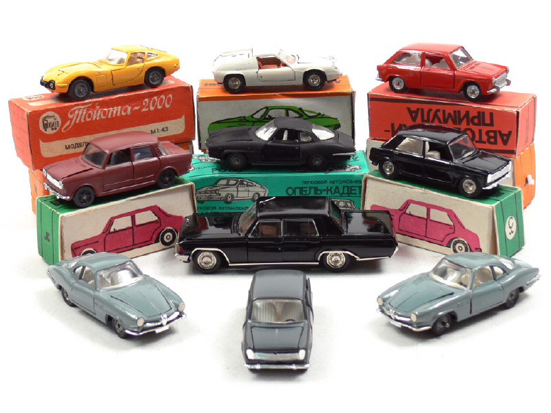 états de 'B' à 'R' - miniatures reproduisant les modèles : ALFA ROMEO, INNOCENTI, FIAT, LOTUS, TOYOTA, AUTOBIANCHI & ZIL - quelques pièces non d'origine - petits manques - une boîte en état 'd' - un véhicule sans boîte