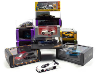 miniatures reproduisant les modèles : RENAULT, MG, MERCEDES, PEUGEOT, PORSCHE, TOYOTA & TRIUMPH - on y retrouve notamment les marques : ELIGOR, TROFEU, UNIVERSAL HOBBIES & VITESSE - un modèle sans boîte