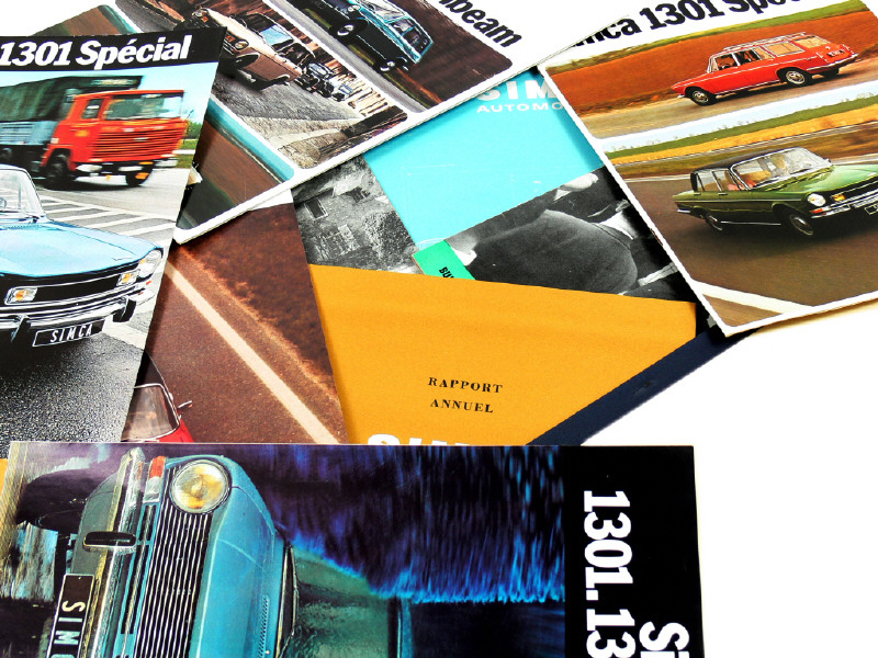 SIMCA (FRANCE) Ensemble de 28 catalogues & dépliants automobiles