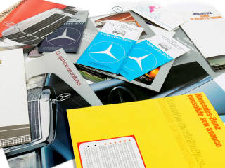on y retrouve les modèles : 200, 200D, 220, 220D, 230, 250, 250C, 250CE, 250S, 280S, 280SE, 300SEL, 300D, 240D, 350SE, 350SEL, 450SE, 450 SEL, 350 SLC, 450SLC, 300 TD, 230T, 250T, 280TE & 600 - on y joint des dépliants de tarifs & un document d'usine 'MERCEDES-BENZ CONSOLIDE SON AVANCE'