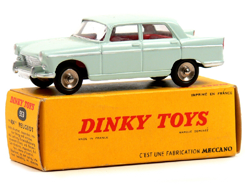 DINKY TOYS (FRANCE) 553 PEUGEOT 404 (premier moule) vert d'eau, intérieur rouge