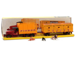 DINKY TOYS (FRANCE) 881 GMC 'PINDER' avec remorque-cage à fauves rouge & jaune