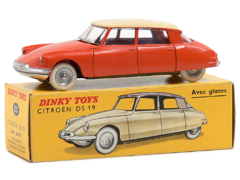 DINKY TOYS (FRANCE) 522 CITROËN DS 19 (version avec vitres & jantes concaves) orange, toit coquille d'oeuf